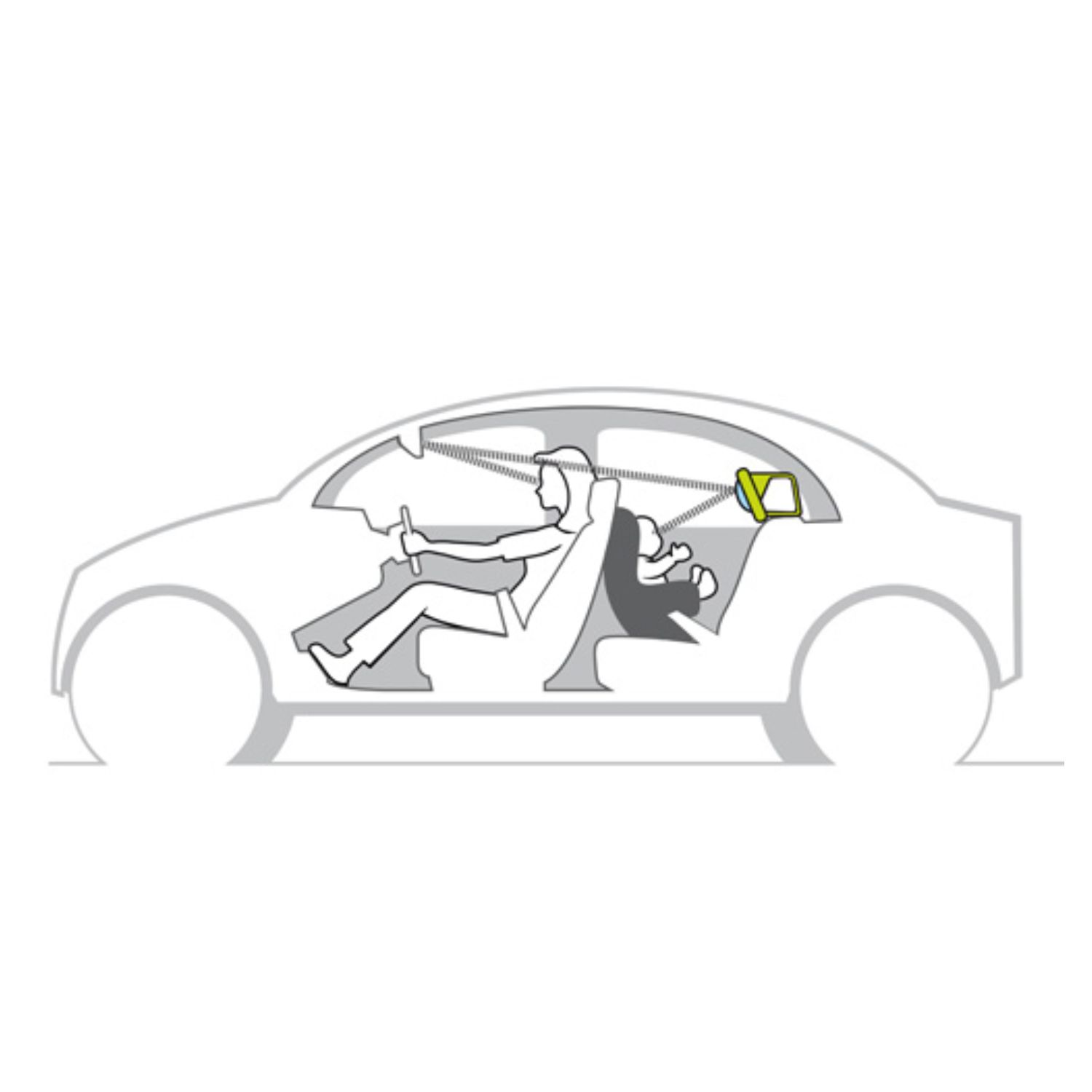 - Baby-safe curved mirror for easy and convenient adult view of baby inside the car